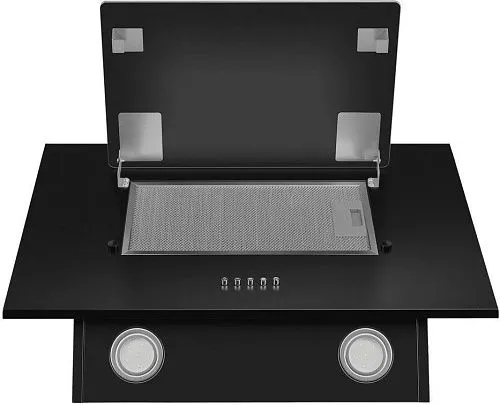 Современная вытяжка наклонного типа с и интересным, дизайнерским решением, скрывающим жироулавливающий фильтр за глянцевым стеклом. Вытяжка выполнена из высококачественной стали и закаленного стекла.