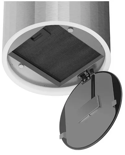 ДИЗАЙН Интерьерная вытяжка в стиле “современная классика”. Корпус вытяжки напоминает античную колонну с вертикальным профильным сечением. КОРПУС цилиндрической формы из нержавеющей стали с термостойким покрытием. В нижней части вытяжки находится алюминиевый многослойный жироулавливающий фильтр. Он легко вынимается и полностью разбирается, что сильно упрощает чистку