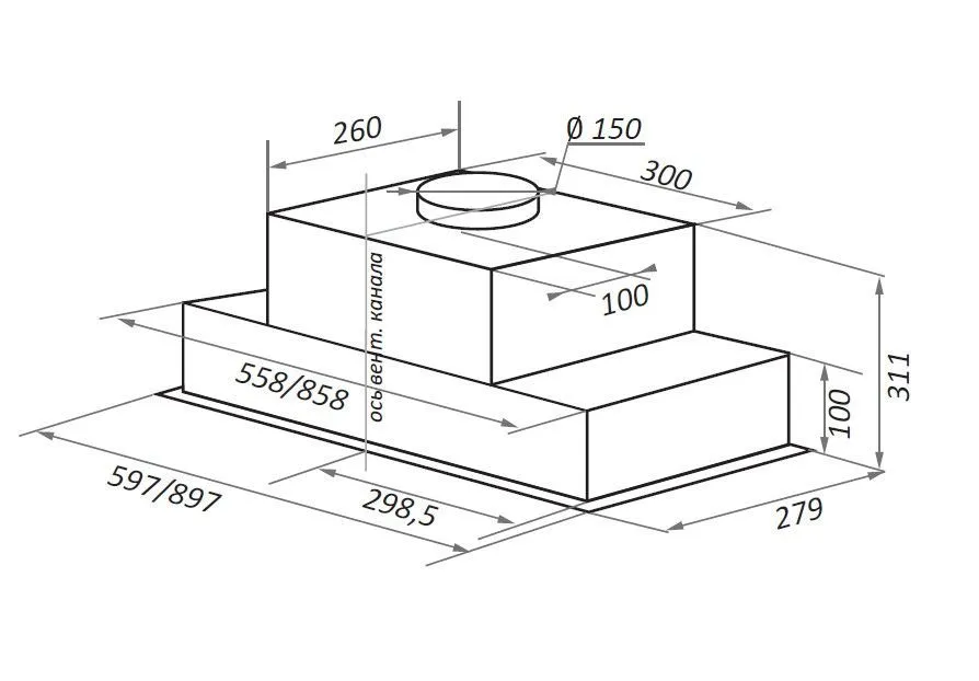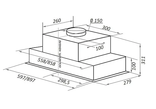 | Ширина вытяжки, мм | 597 | |