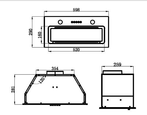 Кнопочное управление позволяет включить освещение и выбрать одну их 3-х скоростей работы - две стандартные и одна турбо (для быстрой очистки воздуха в экстренных случаях, например, если что-то пригорело). Освещение рабочей поверхности обеспечивается 2-мя LED-лампами по 1 Вт каждая.