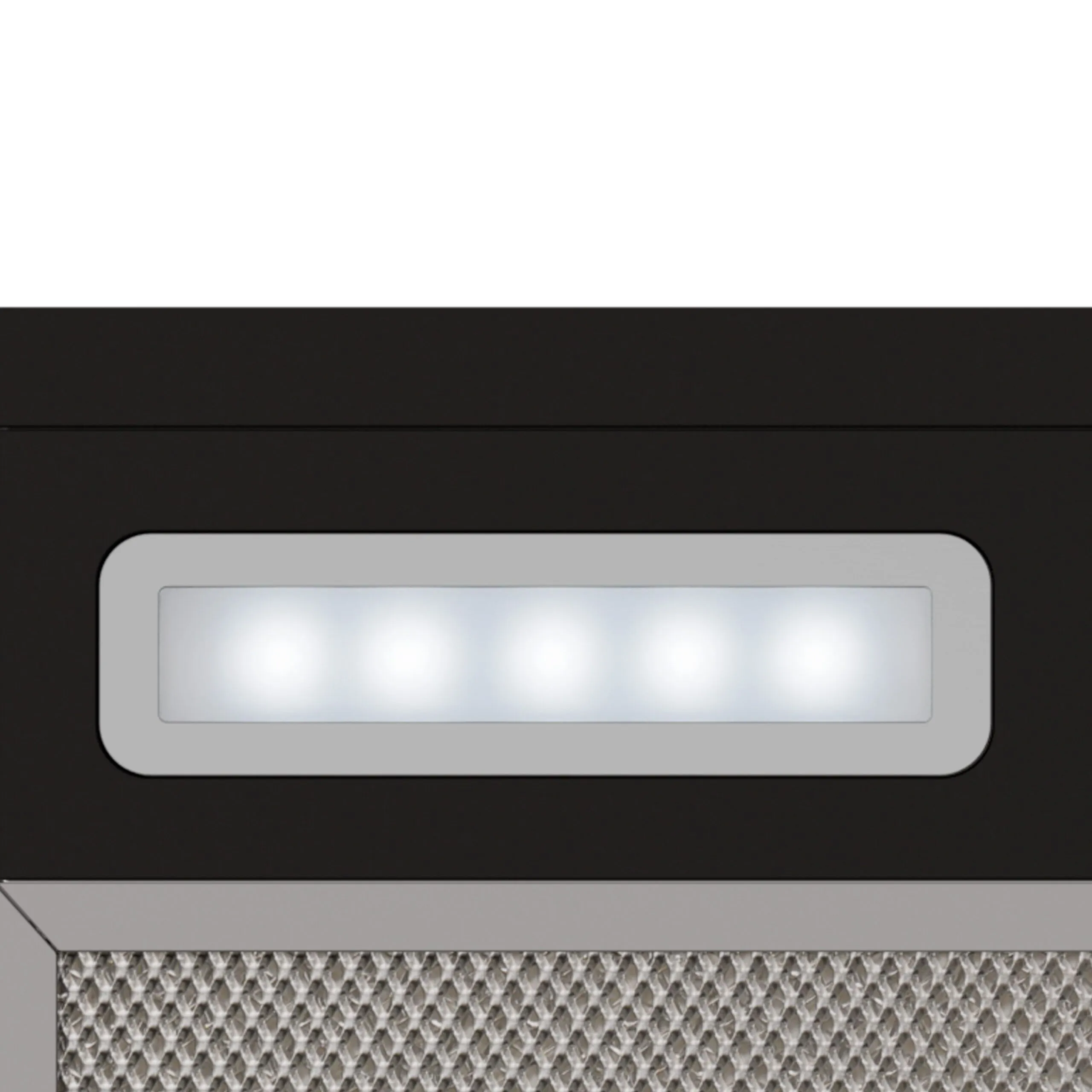 Освещение с помощью LED-ламп мощностью 2 Вт обеспечивает яркий и равномерный свет, экономя электроэнергию. Алюминиевый фильтр легко моется, а угольные фильтры доступны в качестве опции для работы в режиме рециркуляции.