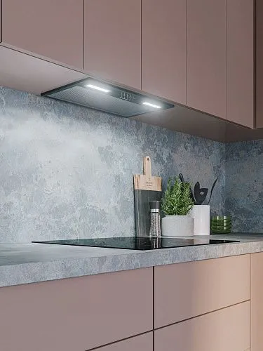 Производительность модели варьируется от 450 до 1050 м³/ч, что позволяет эффективно справляться с разными уровнями загрязнения воздуха. Уровень шума остается низким даже на максимальной скорости, создавая комфортные условия для работы на кухне.