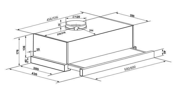 | Ширина вытяжки, мм | 500 | |