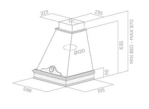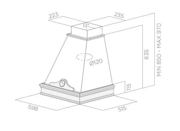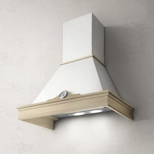 Дизайн. Классическая купольная вытяжка ELICA ORETTA 60 T.GREZZO шириной 60 см выполнена в стиле кантри. Модель белого цвета дополнена рамкой из натурального дерева со стилизованными часами. Своеобразный дизайн позволяет интегрировать вытяжку в классический интерьер или на кухню в стиле «прованс».