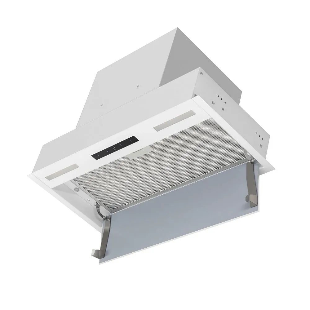Встраиваемая вытяжка монтируется в шкаф над поверхностью плиты. На ваш выбор можно сделать отвод в вентиляционное отверстие или использовать сменный угольный фильтр.