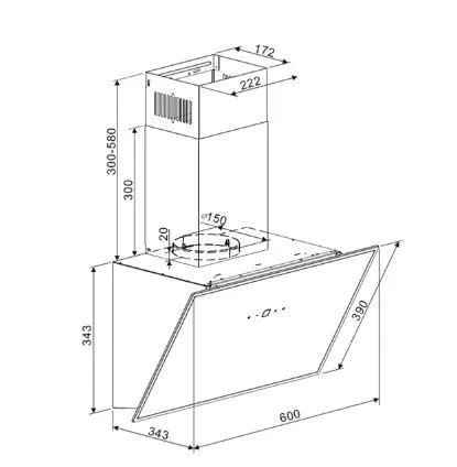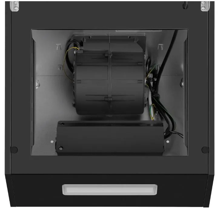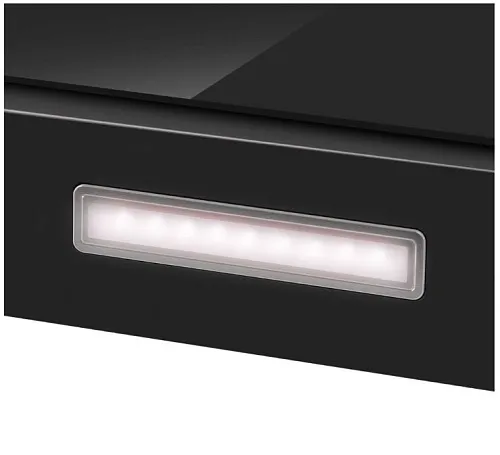 Корпус сделан из эмалированной стали. Фасад выполнен полностью из закаленного стекла . За ней скрыт алюминиевый жироулавливающий фильтр, который легко снимается и полностью разбирается для чистки. Загрязненный воздух втягивается по периметру откидной панели.
