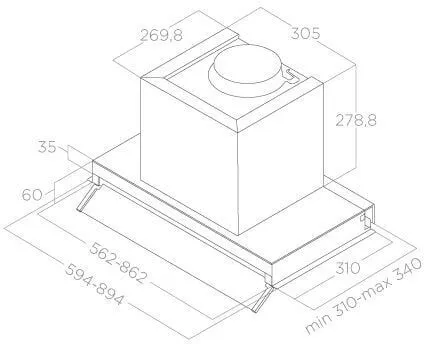 | Ширина вытяжки, мм | 890 | |