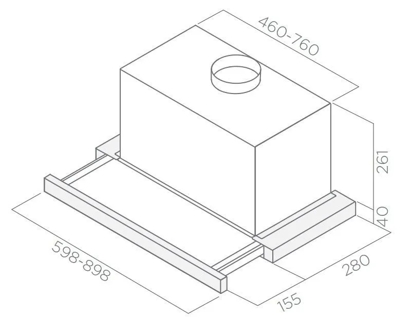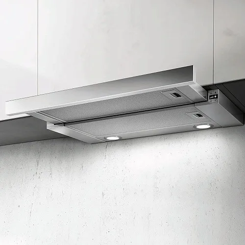 Эта стильная и производительная модель вытяжки предназначена для монтажа в специальную нишу или навесной шкаф, расположенные непосредственно над варочной поверхностью. Встраиваемая конструкция делает ее практически незаметной, что позволяет сохранить единство стилистики оформления интерьера кухни. Выдвижная панель позволяет увеличить зону действия забора воздуха, значительно повышая эффективность его отвода и очистки, а мощности мотора хватает для того, чтобы без проблем удалить до 800 кубических метров воздуха в час. Два алюминиевых жироулавливающих фильтра надежно защищают внутренние детали вытяжки от сажи и мелких частиц жира, которые содержатся в кухонных испарениях. Такие фильтры легко снимаются и могут мыться как вручную, под обычной проточной водой, так и в посудомоечной машине.