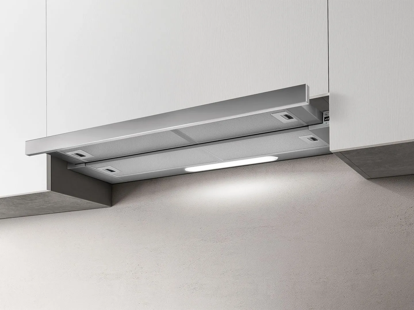 Данная модель сочетает в себе сразу несколько преимуществ: компактные размеры, удобный способ установки, высокую производительность, расширенный функционал. Встраиваемая модель монтируется в кухонный шкаф, расположенный над варочной панелью. Ширина прибора 90 см, в течение часа он обрабатывает до 1200 м3 воздуха.