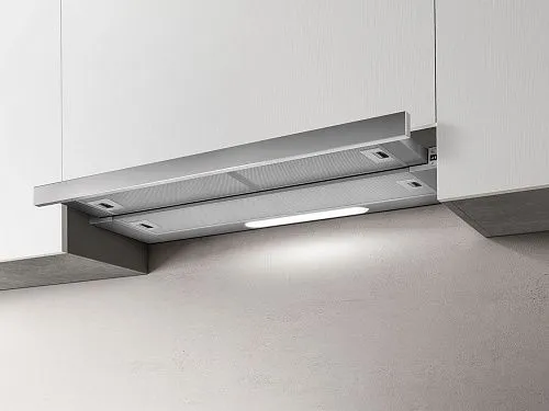 Вытяжка из серии Elite хорошо впишется в современный интерьер, так как выполнена в минималистичном дизайне и цвете «нержавеющая сталь». Прибор оборудован алюминиевым жироулавливающим фильтром, которого достаточно для работы в режиме отвода. Угольный фильтр нужно купить отдельно. При загрязнении фильтрующих элементов на панели управления загораются световые индикаторы.